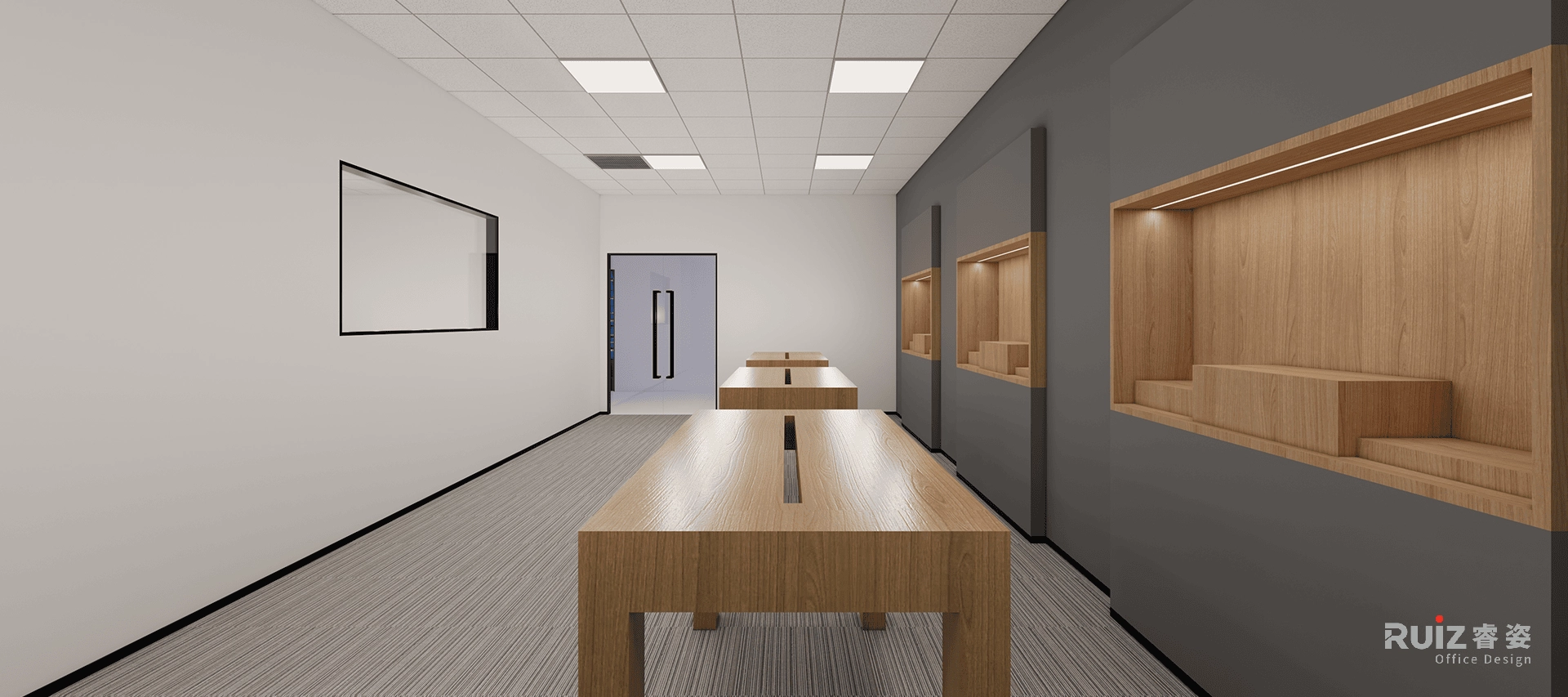 该项目以简约风格为基调,在有限预算内力求最佳展示效果。前台区域巧妙运用简约线条勾勒细节,并设计了半展示半储物柜体,巧妙隐藏柱体的同时兼具实用性。展厅内,白色墙面与灰色重点墙形成鲜明对比,有效提升空间层次感。精心打造的内嵌式木质展柜,配合柔和灯光,聚焦每一件展品的独特魅力。中央区域的木质展示台布局规整有序,引导访客自然流畅地参观。我们致力于在简约的设计框架下,通过巧妙的细节处理和功能性设计,实现空间的优化利用和视觉效果的最大化。